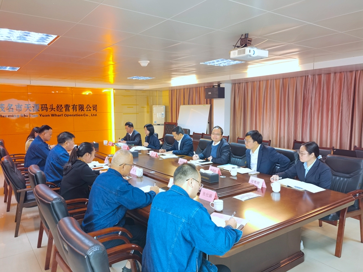 12月23日,茂名港集團(tuán)黨委委員、副總裁周成率隊(duì)到集團(tuán)參股企業(yè)茂名市天源碼頭經(jīng)營有限公司就2025年度工作思路及計(jì)劃進(jìn)行調(diào)研交流。茂名市天源碼頭經(jīng)營有限公司總經(jīng)理陳升陪同調(diào)研,集團(tuán)財務(wù)部、濱?毓晒、港口經(jīng)營公司、股權(quán)代表等相關(guān)人員參加調(diào)研會。