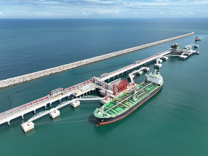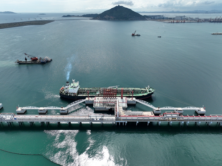 5月29日,利比里亞籍油輪"瓦萊里"號(長183米,寬32米)成功靠泊茂名石化博賀港儲運公司(以下簡稱“石化儲運公司”)10萬噸級成品油碼頭E2泊位,標志著該碼頭正式投產運營。此次靠泊的"瓦萊里"號載運3.7萬噸進口石腦油,是碼頭建成后迎來的首艘油輪。